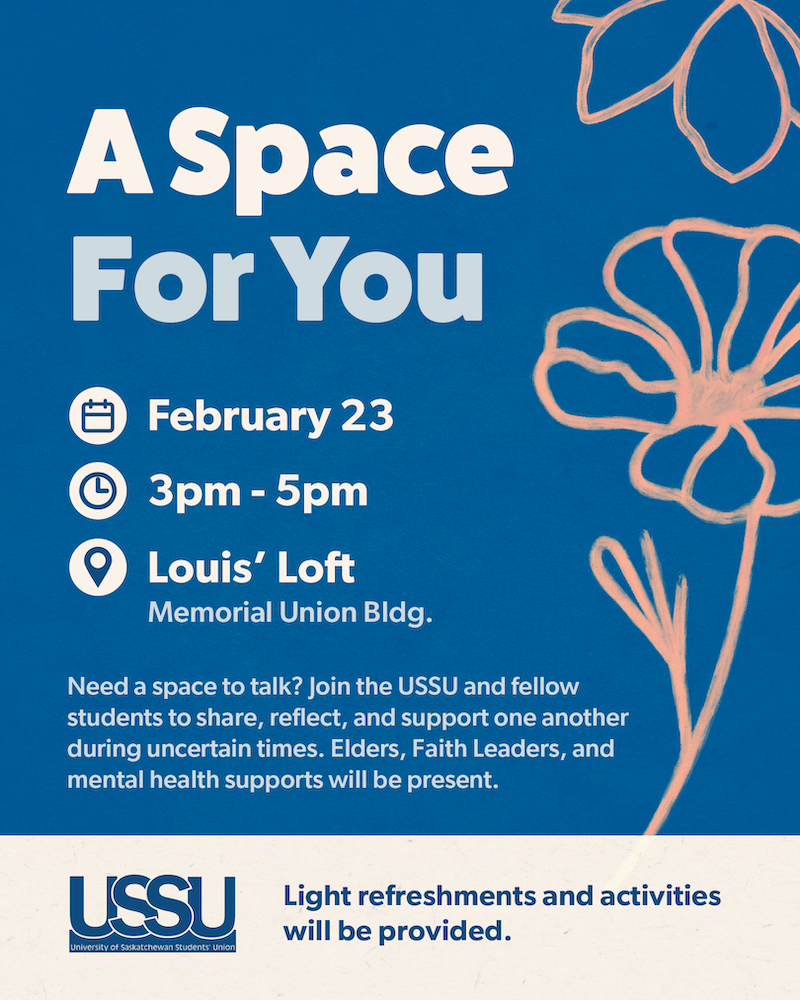 Need a space to talk? Join the USSU and fellow students to share, reflect, and support one another during uncertain times. Elders, Faith Leaders, and mental health supports will be present.